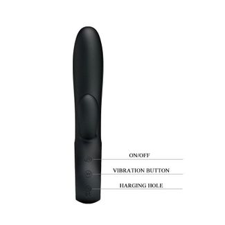 Вибратор Elmer, 12 видов вибрации, перезаряжаемый, чёрный. Мощный вибратор выполнен из приятного на ощупь, гипоаллергенного силикона и полностью водонепроницаем. Ствол имеет чуть изогнутую форму с увеличенной головкой, в которой расположен мотор, что обеспечит незабываемые ощущения от стимуляции точки «G». Клиторальная стимуляция усилит Ваши ощущения. Удобная ручка в форме кольца возможно идеальна Рабочая длина - 11,5 см. None