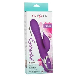 Enchanted Kisser - перезаряжаемый вибромассажер-кролик с 4 режимами толкающего движения. Он изготовлен из бесшовного, гипоаллергенного, безопасного для тела, не содержащего фталатов силикона премиум-класса без запаха. Два мощных мотора обеспечивает 12 интенсивных режима вибрации и 4 функций поступательного движения.<br><br> Игрушка снабжена высокотехнологичным чипом памяти, который позволяет запомнить последний режим выбранной вибрации и включается именно с него, не требуя снова искать предпочитаемую функцию. Очень гибкие изогнутый кончик основного ствола и отросток в виде зайчика с ушками подстраиваются под анатомию тела, обеспечивая интенсивную стимуляцию точки G и клитора.<br><br> Для комфортности введения и получения максимально приятных ощущений рекомендуем использовать смазку на водной основе. Игрушка имеет удобное управление с помощью easy-touch. Вибромассажер заряжается через USB и может быть подключен практически в любом месте, просто подсоедините идущий в комплекте шнур к совместимому порту компьютера или USB-адаптера (приобретается отдельно), а противоположный конец со штекером к игрушке. Рабочая длина - 12,75 см.<br> Время зарядки - 2 часа.<br> Время работы - 1 час. None