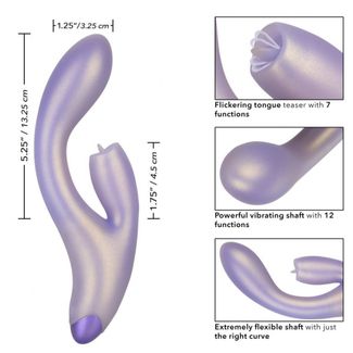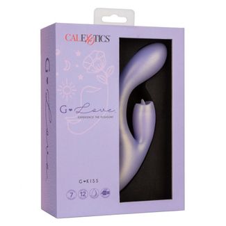 G-Love GKiss – двойной стимулирующий массажер с мерцающим язычком на клиторальном отростке. Вибратор кролик выполнен из 100% качественного силикона, основной ствол имеет 12 функций вибрации, в то время как клиторальный язычок двигается в 7 различных вариантах. <br><br> Изгиб основного ствола отлично стимулирует точку G, а клиторальный отросток прекрасно симулирует оральные ласки.<br><br> Управление осуществляется с помощью 3 кнопок в основании. Чтобы включить или выключить стимулятор, необходимо нажать и в течение трех секунд удерживать верхнюю кнопку питания. <br /><br />Вибромассажер заряжается через USB и может быть подключен практически в любом месте, просто подсоедините идущий в комплекте шнур к совместимому порту компьютера или USB-адаптера (приобретается отдельно), а противоположный конец к разъему у основания. Полная зарядка занимает 120 минут, ее достаточно для беспрерывной работы в течение 55 минут. Рабочая длина - 13,75 см.<br> Длина клиторального отростка - 4,5 см., диаметр - 2,5 см. None