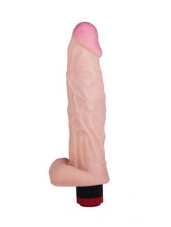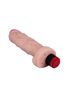 Вибромассажёр телесного цвета. Имеет форму члена с ярко выраженной головкой. Необычайно приятный, рельефный, выполненный из киберкожи, передающей эффект мягкой реалистичной текстуры кожи, не имеет швов. Виброэлемент расположен по всей длине изделия. Степень вибрации регулируется при помощи колесика, расположенного в основании. Рабочая длина - 20 см. None