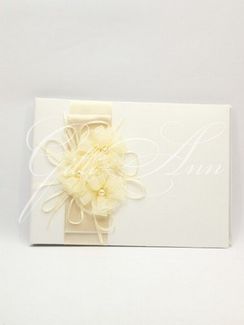 Альбом для свадебных пожеланий Gilliann Crystal Vignette AST071 Сохраните бесценные свадебные пожелания и наставления на страницах изысканного свадебного альбома Gilliann Crystal Vignette. Красивая книга, наполненная искренними словами, во мгновение ока перенесет Вас в романтичную свадебную атмосферу. Гостям будет очень приятно написать свои пожелания для молодоженов в элегантную книгу ручной работы. Дополнит прекрасный антураж свадебная ручка с подставкой Gilliann Crystal Vignette PEN019. Обложка альбома покрыта атласом цвета айвори, украшена широкой кремовой лентой и тремя цветами из кремовой органзы с крупными бусинами в центре. На первом листе книги печатаются имена молодоженов и дата торжества, на остальных страницах напечатаны строки для имен гостей и свадебных пожеланий. Материалы и декор: атлас, атласные ленты, картон, дизайнерская бумага, бусины, органза. Базовые цвета: айвори, кремовый (возможно бесплатное изменение на другие цвета). None