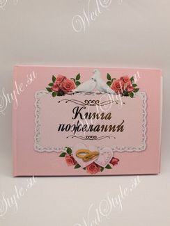 Книга пожеланий STA006 Без данного свадебного аксессуара просто невозможно обойтись на современной свадьбе, ведь он создан, чтобы дарить приятные слова и напутствия молодоженам. Гости с радостью пишут пожелания и стихи на память, чтобы потом, спустя время, можно было перелистывать странички и перечитывать дорогие слова. Книга пожеланий ( FC_07030) STA006 изготовлена в розовых тонах, обложка из качественного дизайнерского ламинированного картона, странички собраны на пружинку, благодаря ей, странички легко переворачивать. На каждой странице имеются черно-белая разметка, чтобы гостям было легче красиво оформить свои слова. На обложке изображены пара белых голубей, которые сидят в окружении прекрасных роз, низ оформлен двумя сердцами с обручальными кольцами. В центре, в красивой рамке имеется золотая надпись «Книга пожеланий», которая красиво декорирована старинными вензелями. Мин. заказ 500 руб.