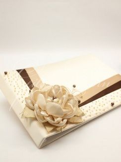 Книга пожеланий Gilliann Amore Caffa AST031 Книга пожеланий - один из предметов коллекции Amore Caffa. Выполнена из атласа кремового цвета, обтянута лентами коричневого и светло-коричневого цветов. На пересечении лент - роскошное соцветие розы, в глубине которой - настоящая россыпь жемчуга и бусин. Очень красивая оригинальная книга, которая станет для супругов приятным воспоминанием о свадьбе и гостях, оставивших пожелания. Материалы и декор: атлас, атласные ленты, декоративные элементы, бусины, жемчуг, бумага. None