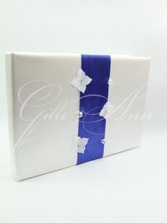 Книга пожеланий Gilliann Sweet AST037 Оставлять свои пожелания в специальной книге - хорошая традиция, особенно удобна для стеснительных гостей, которые не привыкли быть в центре внимания, произнося тосты и вручая подарки. оставшись наедине на несколько минут, можно не спеша написать все, что хочется пожелать молодоженам. Книга пожеланий Sweet сделана из белоснежного атласа, украшена атласной лентой ярко-синего цвета, по которому в геометрическом порядке, чередуясь, расположены маленькие белые цветочки и бусины. Материалы и декор: атлас, атласные ленты, декоративные элементы, бусины, бумага, стразы Swarovski. None