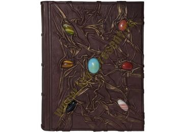 Это оригинальный и эффектный подарок, созданный по авторскому дизайну проекта «Знаки Внимания». Удивительная книга, инкрустированная полудрагоценными камнями, принесет своему обладателю удачу, станет магическим талисманом на пути покорения новых вершин. Остановив свой выбор на этом изделии, Вы подарите исполнение самых заветных желаний. Книга посвящена драгоценным и полудрагоценным камням: дана их классификация, описаны физические и оптические свойства, способы огранки, шлифования, резьбы и гравировки, особое внимание уделено рассказу об истории добычи самоцветов. Каждый натуральный камень, представленный на обложке, обладает волшебными свойствами: Агат - увеличивает силу красноречия, помогает ставить спортивные рекорды. В древности считали агат камнем здоровья, процветания и долголетия Малахит - приносит исполнение желаний, оберегает детей своего владельца, делает своего обладателя объектом повышенного интереса и любопытства Авантюрин - заряжает оптимизмом, увеличивает уверенность в себе, помогает выигрывать в любой игре Бирюза - дает людям способность к завоеванию авторитета и власти Кахолонг - укрепляет благосостояние, увеличивает накопления, пртягивает деньги, улучшает здоровье Яшма - сулит богатство и здоровье, дарит красноречие, улучшает память Сердолик - вызывает симпатию противоположного пола к его владельцу, помогает в торговле и любом другом бизнесе -Авторский переплет -Кожа -Ручная работа -Материал: кожа, бумага, полудрагоценные камни: агат, малахит, авантюрин, бирюза,кахолонг, яшма, сердолик