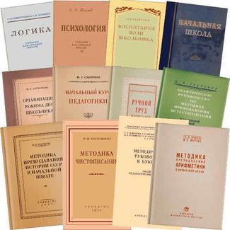 В комплекте: 1) Логика. Учебник для средней школы С.Н. Виноградов А.Ф. Кузьмин Учпедгиз 1954;2) Психология. Учебник для средней школы. Б.М. Теплов. Учпедгиз 1954;3) Воспитание воли школьника. В.И. Селиванов. Учпедгиз 1954;4) Начальная школа. Настольная книга учителя. Учпедгиз 1950;5) Организация режима дня школьника» М. В. Антропова. Учпедгиз 1955;6) Начальный курс педагогики. Руководство для учителей и родителей. Смирнов М.Т. 1950;7) Ручной труд в начальной школе. Жилкина А.Д., Жилкин В.Ф. 1958;8) Практическое руководство по методике преподавания естествознания в начальной школе;9) Методика преподавания истории СССР в начальной школе. Карцов В.Г. 1951;10) Методика русского языка в начальной школе. Костин Н.А. 1949;11) Методическое руководство к букварю. С. П. Редозубов и др. Учпедгиз 1956;12) Методика чистописания. Н.Н. Боголюбов. Учпедгиз 1955;13) Методика преподавания арифметики в начальной школе. Кавун И.Н., Попова Н.С. 1936;14) Методика преподавания арифметики в начальной школе. A.C. ПЧEЛKO. Учпедгиз 1949; None