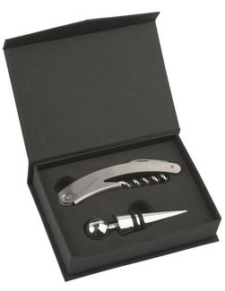 <p>Набор аксессуаров для вина включает самое необходимое для комфортного открытия бутылки.</p> <p>Благодаря штопору вы легко откроете бутылку, а при помощи пробки вино как можно дольше сохранит свой вкус и аромат.</p> <p>Данный набор является универсальным подарком, который подойдет каждому, кто любит благородный напиток - вино.<br /><br />Цвет: черный<br />Материал: нерж.сталь<br />Размер товара: 135 х 100 х 28 мм.<br />Описание упаковки: черная картонная подарочная коробка<br />Размер упаковки: 133x98x30 мм<br />Вес с упаковкой: 225 г<br />Комплектация: штопор, пробка, шильд золотистый (50*30)</p> Наличные, безнал., карты, эл. деньги, юр. лица Возможен самовывоз. Есть доставка.