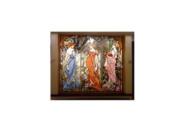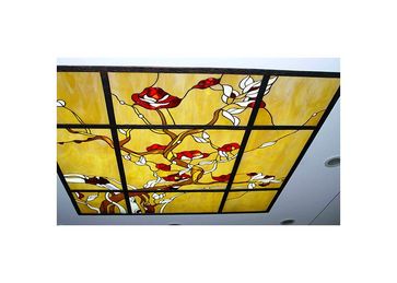 Изготовление витражей Тиффани — когда каждый фрагмент стекла необходимой формы вырезается и обертывается в медную фольгу. После этого фрагменты спаиваются между собой. Данная технология позволяет создавать контуры рисунка незначительной толщины, всего в 1-2 мм. Поэтому ее широко применяют для создания миниатюрных, изящных витражных композиций. Витраж, изготовленный по технике Тиффани настолько изящный и тонкий, что создается впечатление, будто это роспись по стеклу. Возможности витража почти безграничны. Новые технологии позволили вставлять витражи не только в окна, но и использовать в виде вставок в двери входные и межкомнатные, перегородки, зимние сады и даже в потолочном декоре.