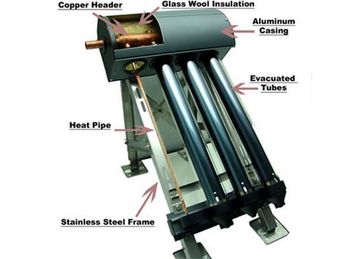 Вакуумная трубка: Коэффициент поглощения: >0.95 Коэффициент эмиссии: <0.05 (80) Вакуум: <5x10‐5 Pa Средние тепловые потери <0.8 w/м.кв.гр.С Материалы: Вакуумная труба : боросиликатное стекло Тепловая труба : красная медь Коллектор‐теплообменник : алюминий/красная медь Корпус : алюминий Утеплитель : Rock wool Вакуумные трубки сделаны из высококачественного, сверхпрочного боросиликатного стекла, что обеспечивает защиту трубок от града, механических повреждений, загрязнения и запыления. Благодаря многослойному напылению селективного покрытия внутри вакуумной трубки – обуславливается высокая поглощательная способность трубок, термоустойчивость, морозостойкость и низкий коэффициент отражения. Специально разработанный механизм каркаса солнечных водонагревателей EE‐SHS позволяет устанавливать коллектор под нужным углом, по отношению к солнечным лучам Селекторный теплообменник утеплен специальным высокоэффективным утеплителем Rock Wool, что минимизирует теплопотери.
