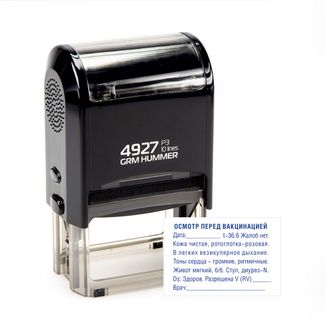 - Медицинский штамп осмотра «Осмотр перед вакцинацией» на оснастке GRM 4927 P3 Hummer (60х40) мм, ЧЕРНЫЙ корпус по выгодной цене 1 450 р. руб.;