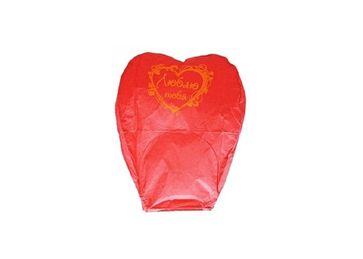 Свадебный небесный фонарик "Люблю тебя" - красный STA487 Воздушный фонарик красного цвета с надписью "Люблю тебя". Поднимается на высоту до 200 м, длительность полета - около 20 минут. Размер: 36х83х96 см. Материал: бумага, воск. None