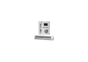 Управление завесами осуществляется с выносного пульта, входящего в комплект поставки. Пульт управления позволяет поддерживать необходимую температуру воздуха вблизи проема и регулировать производительность завесы и тепловую мощность. С одного пульта можно управлять шестью одинаковыми завесами КЭВ-П201Е, КЭВ-П221Е или четырьмя одинаковыми завесами КЭВ-П202Е, КЭВ-П222Е.