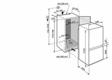 Технические характеристики Размеры ниши В/Ш/Г [см]: 177,2 - 178,8/56 - 57/55 Класс энергетической эффективности: A+ Расход энергии за год [кВтч/г]: 303 Количество компрессоров: 1 Независимые холодильные контуры: 2 Уровень шума [дБ(А)]: 40 Секция BioFresh: - Система NoFrost: - Размораживание холодильной камеры: автоматическое Размораживание морозильной камеры: ручное Климатический класс: SN-T Время хранения при отключении питания [ч]: 24 Мощность замораживания в сутки [кг]: 14 Символьное обозначение морозильной камеры (количество звезд): 4 Монтаж двери: door sliding (скользящее крепление) Сторона открывания двери: правая, перенавешиваемая Общий / полезный объем Брутто-объем, общий [л]: 284 Брутто объем холодильной камеры [л]: 201 Брутто объем морозильной камеры [л]: 83 Полезный объем, общий [л]: 281 Полезный объем холодильной камеры [л]: 199 Полезный объем морозильной камеры [л]: 82 Функции Управление: Управление: ЖК-дисплей MagicEye с цифровой индикацией температуры Обсуживание системы управления: Кнопки Индикация температуры в холодильной камере: внутри цифровой + термометр Индикация температуры в морозильной камере: в цифровом виде, за дверью Функции: Автоматическая функция SuperFrost: автоматическое отлючение через 65 часов (макс.) Автоматическая функция SuperСool: - Температура в морозильной камере регулируется: + отдельно от холодильной камеры: + в зависимости от установленной температуры в холодильной камере: - Сигнализация неплотно закрытой двери холодильной камеры: - Сигнализация неплотно закрытой двери морозильной камеры: - Сигнализация неисправности: оптический и акустический Доводчик двери SoftSystem: - Ножки, регулируемые по высоте: 2 Выравнивающие планки: 2 Оснащение холодильной камеры Оснащение холодильной камеры: Количество полок: 5 из них регулируемых по высоте: 4 из них складных: 0 Материал полок в холодильной камере: закаленное стекло Контейнеры VarioBox: 0 Полка на двери хранения для бутылок: 1 Полка на двери для хранения консервов: 2 Материал пол