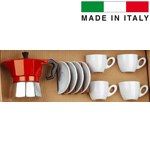 Набор гейзерная кофеварка алюминиевая и чашки Материал: Алюминий; Страна производитель: Италия; Тип продукта: Гейзерная кофеварка; Тип ручки: Бакелитовая ручка Гейзерная кофеварка от Buon Caffe это классическое приготовления ароматного кофе Оригинальная и эстетически красивая форма - гейзерная кофеварка заинтригует Вас. Объем из расчета 1 чашка 60 мл. Практичная, надежная кофеварка из алюминия прослужит длительное время. Прочная и безопасная бакелитовая ручка. Предохранительный клапан давления. Производство Италия. Упаковка: коробка None