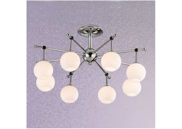 Мощность, Вт:40W, Тип цоколя:G9, Количество ламп, шт:8, Материал арматуры:Металл, Цвет арматуры:Хром, Ширина (Диаметр), см:63, Высота, см:33, Площадь освещения, м.кв.:20, Материал плафона:Стекло, Цвет плафона:Белый матовый None