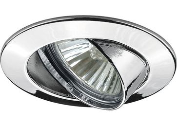 Встраиваемый светильник Paulmann 98943 Mатериал Алюминий Цинк Цвет хром Диаметр 83 мм Мин глубина установки 90 мм Монтажное отверстие 68 мм Максимальная мощность 1x50 Вт (ватт) Рабочее напряжение 230 В (вольт) Цоколь GU10 None