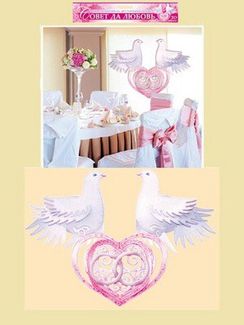 Набор украшений на двустороннем скотче СОВЕТ ДА ЛЮБОВЬ! (GKIM 70.647.00) STA871 Набор для украшения интерьера. Выполнен в виде двух голубков, сидящих на сердце, в котором переплелись обручальные кольца. Украшения на скотче клеятся на гладкую поверхность, не оставляют следов. Мин. заказ 500 руб.