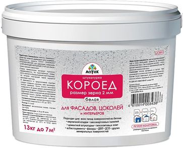 Назначение: Финишное покрытие, применяемое в отделке стен фасадов зданий и интерьеров с эффектом "короед".Типы поверхностей: Для всех типов поверхностей из бетона, кирпичной кладки, гипсокартона, цементной штукатурки, гипсолитовых плит, асбестоцемента, фанеры, ДВП, ДСП и других, на минеральной основе.Свойства: Не требует идеально ровной подготовленной поверхности, удачно скрывает мелкие дефекты стен, образуя твердое фактурное покрытие. Материал прост в работе. Наличные, банковская карта, безналичный расчет Возможен самовывоз. Есть доставка.