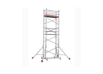 Проверены TÜV/GS, допустимая нагрузка 200 кг/м2 по EN 1004 Максимальная рабочая высота 12,30 м (для наружных работ максимум 10 м по EN 1004) Высоту установки площадки с люком (2,00 х 0,6 м) можно изменять от перекладины к перекладине (с интервалом 25 см) Погодостойкий противоскользящий настил из панели пропитанной фенольной смолой Быстрая сборка без инструмента благодаря страховочным зажимам с силовым соединением посредством выдвигаемой скобы на перекладине Ролики с тормозом регулируемые по высоте для установки вышки на неровной поверхности Легко монтируемые угловые подпоры обеспечивают дополнительную устойчивость вышек с рабочей высотой 7,30 м и более Конструкцию в собранном состоянии можно легко двигать по базовой траверсе Противоскользящие профилированные перекладины на вертикальных рамах образуют надежную лестницу для подъема с внутренней стороны Оптимальная устойчивость благодаря высокопрочным базовым траверсам Технические характеристики: