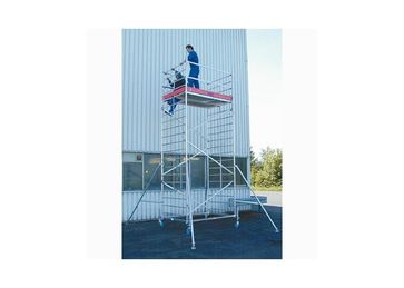 > Проверены TÜV/GS, допустимая нагрузка 200 кг/м2 по EN 1004 Максимальная рабочая высота 12,30 м (для наружных работ максимум 10 м по EN 1004) Высоту установки площадки с люком (2,00 х 0,6 м) можно изменять от перекладины к перекладине (с интервалом 25 см) Погодостойкий противоскользящий настил из панели пропитанной фенольной смолой Быстрая сборка без инструмента благодаря страховочным зажимам с силовым соединением посредством выдвигаемой скобы на перекладине Ролики с тормозом регулируемые по высоте для установки вышки на неровной поверхности Легко монтируемые угловые подпоры обеспечивают дополнительную устойчивость вышек с рабочей высотой 7,30 м и более Конструкцию в собранном состоянии можно легко двигать по базовой траверсе Противоскользящие профилированные перекладины на вертикальных рамах образуют надежную лестницу для подъема с внутренней стороны Оптимальная устойчивость благодаря высокопрочным базовым траверсам Технические характеристики: