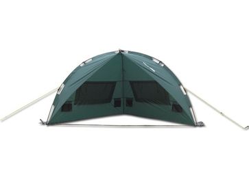 Очень продуманный и быстро устанавливаемый тент-укрытие для 1-2 рыбаков, ловящих рыбу с берега на донные и поплавочные удочки. Изготовлен из прочных современных материалов, усиленный растяжками и широкой юбкой, тент представляет собой устойчивую конструкцию, способную выдержать сильные шквалы ветра. Преимущества: — ультрабыстрая установка — 15 секунд (без учета шпилек); — высокая ветровая устойчивость; — ткань тента с проваренными швами выдержит дождь любой интенсивности; — окна оборудованы москитной сеткой