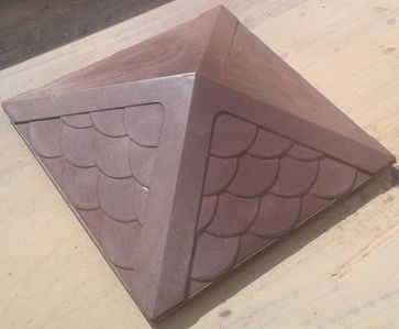Полимеркомпозитные, полимерпесчаные колпаки на столб для забора из кирпича отличаются невысокой ценой, не гремят не впитывают воду, не разрушаются, не боятся ударов, не мнутся. Окрашенный в массе от 1115 руб.шт. Под покраску 700 руб.шт. Под фонарь от 1329 руб.шт. Посадка на столб 385х385мм и 513х513мм, 390*520 мм