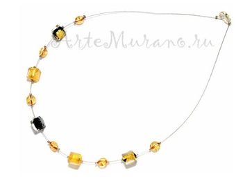 Золотые и чёрные кубики из муранского стекла на струне. Ручная работа. Италия None