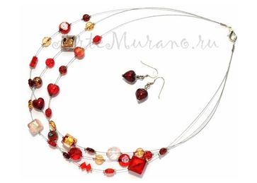 Закажите Комплект Портофино пикколо красный: ожерелье 3 нити, серьги у компании ООО Питон' в Москве на портале Alloy: