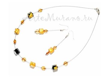 Золотые и чёрные кубики из муранского стекла на струне. Ручная работа. Италия None