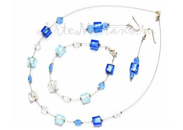 Синие, голубые и серебристые бусины-кубики на струне. Ручная работа. Италия None