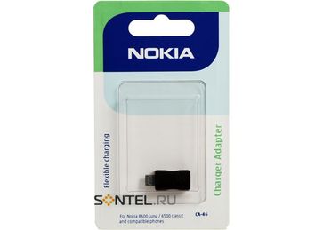 Описание:Адаптер Nokia CA-46, позволит Вам использовать зарядные устройства со штекером диаметром 2,0 мм (АС-4E и DC-4). None
