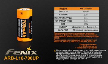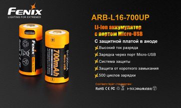- Fenix Аккумулятор 16340 Fenix ARB-L16-700UP (ток разряда 2.5 A) с зарядкой Micro-USB по выгодной цене 700 р. руб.;