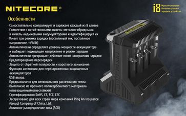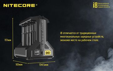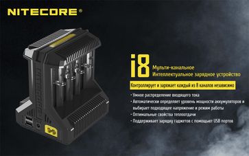 - NiteCore Универсальное З У устройство для 8 аккумуляторов NiteCore I8 по выгодной цене 2 600 р. руб.;