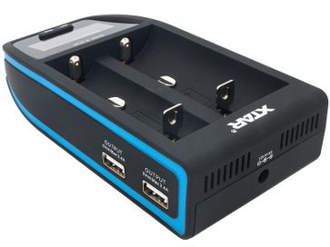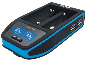 Зарядное Устройство XTAR Over 4 Slim для IMR, INR, ICR АКБ — быстро заряжает 1 или 2 высокотоковых литиевых аккумулятора, отображая информацию по каждому отдельно на ЖК экране с подсветкой!