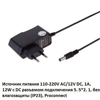- Proconnect Адаптер питания 110-220V AC 12V DC, 1А, 12W с DC разъемом подключения 5. 5х2. 1, без влагозащиты (IP23) в каталоге Зарядные устройства в Москве;
