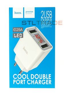 Сетевое зарядное устройство c 2 USB HOCO C25A, белое