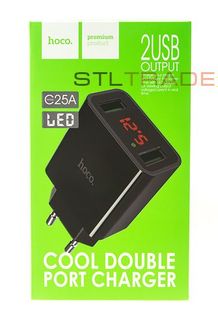 Сетевое зарядное устройство c 2 USB HOCO C25A, черное