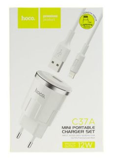 - Сетевое зарядное устройство c USB+кабель Lightning HOCO C37A, белое, max 2.4A по выгодной цене 300 р. руб.;