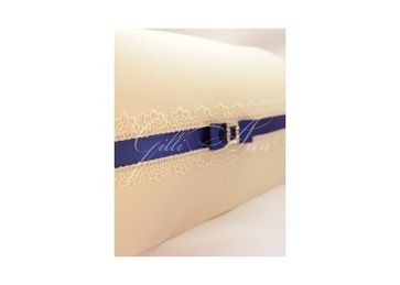 Свадебный сундучок – казна для денег на свадьбу. Выполнен с большой фантазией и креативом. На светлом кремовом фоне по центру расположена ярко-синяя атласная полоса с маленьким бантом посередине. Почти невидимое тонкое кружево придает просто волшебное очарование.