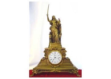 Часы "Богиня войны и мира"Материал: БронзаДлина: 185 ммШирина: 390 ммВысота: 575 ммВес: 20000 гр Современная разработка. Богиня в одной руке держит меч, в другой - лавровую ветвь, которые символизируют войну и мир. None