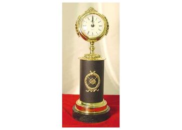 Часы «Подарочные» интересны формой корпуса, увенчанного пальметкой, расположенного на подставке в виде черного цилиндра, обрамленного шлифованной бронзой. В оформлении используется поделочный камень и накладки с разнообразной тематикой. Строгость и изысканность цветовой гаммы, современный дизайн в сочетании с благородным блеском бронзы или латуни, делает их неповторимым подарком. None
