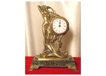 Современная авторская разработка. Изделие выполнено в стиле модерн рубежа 19 –20 вв. Вольная стилизация под образцы мелкой пластики. Излюбленный мотив - красивое женское тело в томной позе, со струящимися волосами. В стилизованном декоре цветов и листьев – часы.Часы "Возрождение" (на камне), часы, часы каминные, часы настольные, часы настенные, напольные часы, None