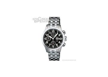 Коллекция: GENTS Корпус: Нержавеющая сталь Гарантия: 2 года. Комплектация: часы, фирменная упаковка, инструкция, гарантийный талон. Особенности:Корпус и браслет из нержавеющей стали, калибр 7550 Valjoux, часы, минуты, секунды, индикация числа, день недели, секундомер, люминесцентные стрелки и метки. None