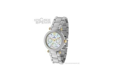 Коллекция: MYSTERIOUS GLOW Корпус: Нержавеющая сталь + IP покрытие Гарантия: 1 год. Комплектация: часы, фирменная упаковка, инструкция, гарантийный талон. Особенности:Индикация числа и дня недели. 12-ти и 24-х часовой формат. Корпус и браслет с частичным IP покрытием. Перламутровый циферблат украшен кристаллами. Стрелки с люминесцентным покрытием. None