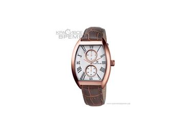 Особенности:Японский кварцевый механизм. Индикатор суточного времени в 24-х часовом формате. Маленькая секундная стрелка вынесена на отдельный циферблат. Гильошированный циферблат. Кожаный ремешок, ширина 18-20 мм. Ширина корпуса 38 мм.