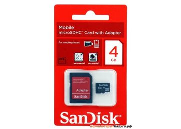 - Карта памяти MicroSDHC 4Gb SanDisk Class4 + SD Adapter в каталоге Жесткие диски USB в Москве;