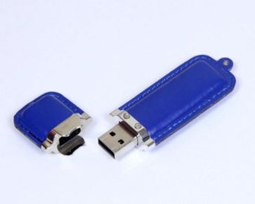 - Кожаная флешка с металлическими вставками синего цвета в каталоге Жесткие диски USB в Москве;