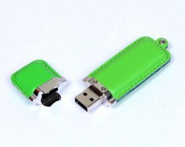 - Кожаная флешка с металлическими вставками зеленого цвета в каталоге Жесткие диски USB в Москве;
