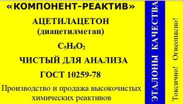 - Ацетилацетон (диацетилметан, пентан-2,4-дион) чистый для анализа ГОСТ 10259-78 от производителя со склада в Москве в каталоге Жидкие органические и неорганические реактивы в Москве;