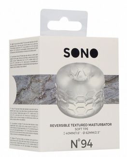 №94 - Reversible Masturbator and Bumper – мастурбатор открытого типа с текстурным внутренним рельефом. Он изготовлен из эластичного мягкого материала, прекрасно растягивается, подстраиваясь под любой размер при этом плотно облегая член. Мастурбатор не скользит, удобно и комфортно располагаясь в руке.<br><br> Для комфортности использования и получения максимально приятных ощущений рекомендуется использовать смазку на водной основе. Мастурбатор можно также использовать в качестве ограничителя для предотвращения полного проникновения тем, кто испытывает дискомфорт во время полового акта. Поменять текстуру можно, вывернув игрушку наизнанку. Внутренний диаметр - 2 см. None